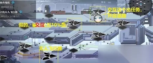 7、飞机道具交互右上角的飞机,会开启新道路,但别碰其他花纹的飞机,否则扣10%血(路过不扣)。无人飞行器在左下方。