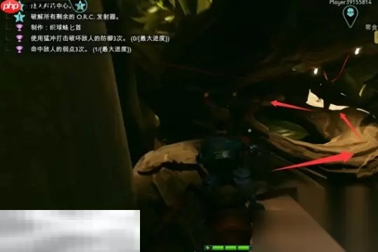 3、面对树篱区域时,指挥蚂蚁攻击由蝎子守护的树枝洞口,将其咬开后进入,沿着内部枝干一路向上,直至抵达前哨站位置。