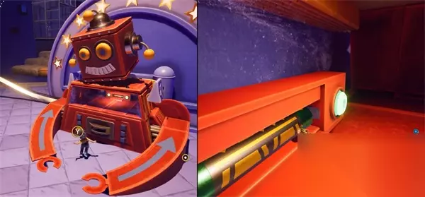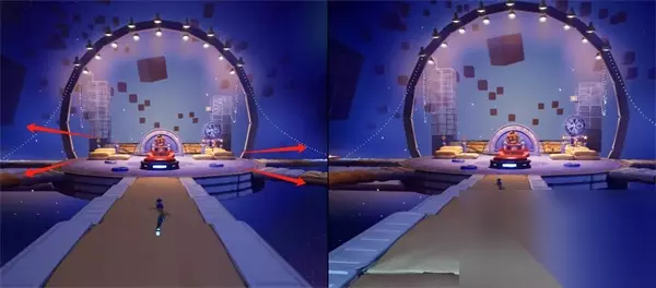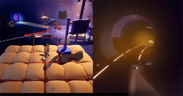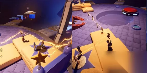 在太空旅途中,前往第二层传送门时,请务必确保收集信号柱的电路组件。这些元件散落在平台上的每个角落,其中在平台后部的两个信号柱可由两名伙伴共同获取。 双人成行太空方块通关 1、在太空之旅第二层选择上方有一个方块的传送门进入。
