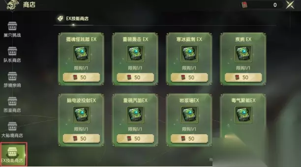 3.左侧列表下滑至底部,点击【EX技能商店】使用【技能书】即可直接兑换