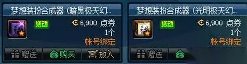 DNF梦想装扮合成器价格是6900点券。