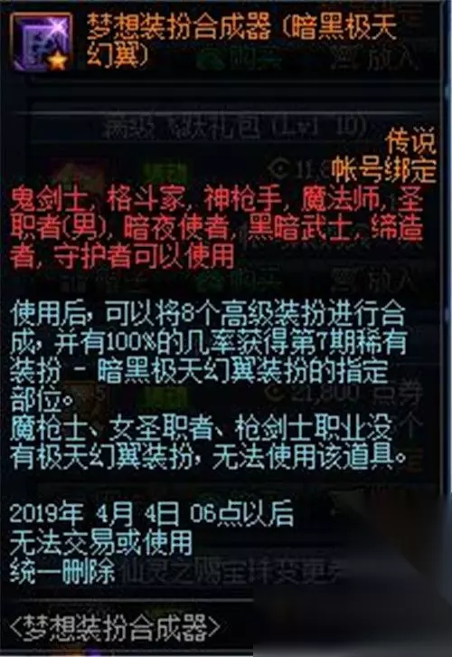 从图片中可以看出,本次更新的梦想装扮合成器使用者并没有魔枪士、女圣职者、枪剑士,所以玩家要看准自己选择的职业再做定夺。 DNF2020活动 欲望之塔
