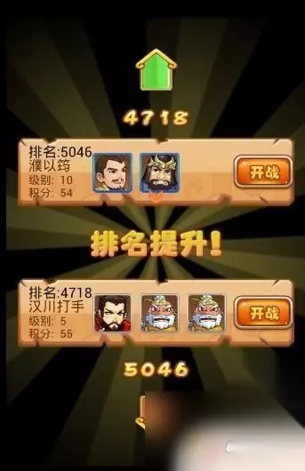 选择一组合适的(看对方排名数值哦,数字越大,战斗力越弱),点击开战!哈哈,所谓“老将出马一个顶俩”果断把对方虐了!完胜!