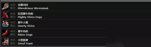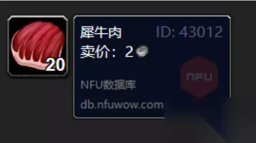 魔兽世界犀牛肉在哪里刷 犀牛肉可以烹饪: 虫犀肉排:在30秒内恢复总计22500点生命值。如果你花费至少10秒钟来进食,你的精准将提高40(10.15@L70),耐力将提高40点,持续1小时。 巨型犀牛热狗:在30 秒内恢复总计22500点生命值。如果你花费至少10秒钟来进食,你的每5秒法力恢复将提高20点,耐力将提高40点,持续1小时。 犀牛大餐:在30 秒内恢复总计22500点生命值。如果你花费至少10秒钟来进食,你的护甲穿透将提高40(5.94%@L70),耐力将提高40点,持续1小时。 犀牛热狗:在30 秒内恢复总计22500点生命值。如果你花费至少10秒钟来进食,你将获得每5秒法力回复提高15点,耐力提高30点的效果,持续1小时。 小型筵席:摆放一桌筵席,供你的队友大快朵颐!在30 秒内恢复总计22500点生命值和19200点法力值。如果你花费至少10秒钟进食,你的体型会变小。