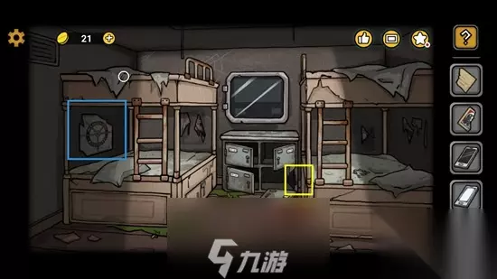 第一部分我们来到了走廊,这关中我们就可以前往一号船员室进行探索了,这一部分我们可以收集到绘本2并且能触发非常精彩的剧情并且找到奥莉的尸体,下面就来告诉大家诡船谜案2第二部分图文攻略,一起来看看奥莉线索怎么找。 第二部分攻略 12、一号船员室处,下图红框处点击拾取得到首饰盒。黄框处点击放大后对最里面窗和墙的接触处有个小纸条,用铁丝勾出来,是绘本残页(2)。然后蓝框处点击放大后点击海报的右下角,看见提示,其中船舵和下面的红圈是医务室的开门提示,红圈边上五个数字是后续床下的柜子的提示,现在不能用。