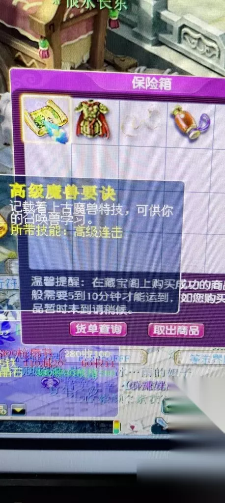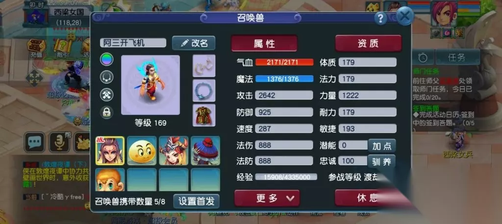 现在我的野生豹子属性,搭配他的技能真好用,猴子都不想用了,一直放仓库在。 再后来,每天做做师门,有一天突然想,一个号每天师门半小时能赚4.50万游戏币了换成人民币也差不多5块钱了,就想如果两个号每天做做师门不是就可以赚十块钱,一个月也是两三百,加上副本,抓鬼一个月不是更多? 于是“为了一个鼠标买了台电脑”,花了几百块钱买了个109的垃圾号,每天刷刷口袋,做做师门,跑跑镖,走我大号的老路。