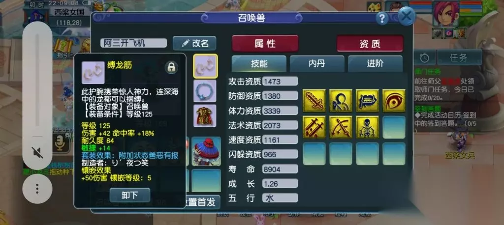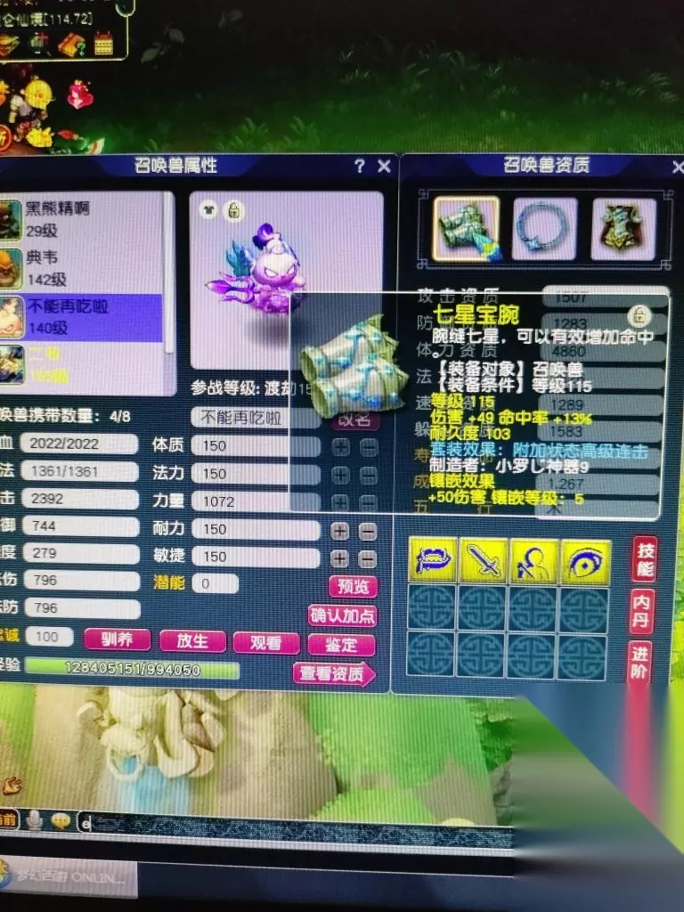 目前小号修炼情况 飞升前还给小号搞了个宝宝,鼓励他渡劫,要不然这宝宝只能放他身上,用也用不了。