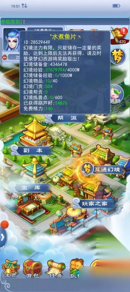 大号目前159,玩的法系神木林,本来大号也是个没修没技能没等级的渣渣号,十年前,那时候早期跑镖还没改,每天跑50镖,每天20个师门,最高的时候储备金跑镖跑到了两亿多,储备金多了就点修,跑宝宝秘传,硬是玩成了现在这个修炼。