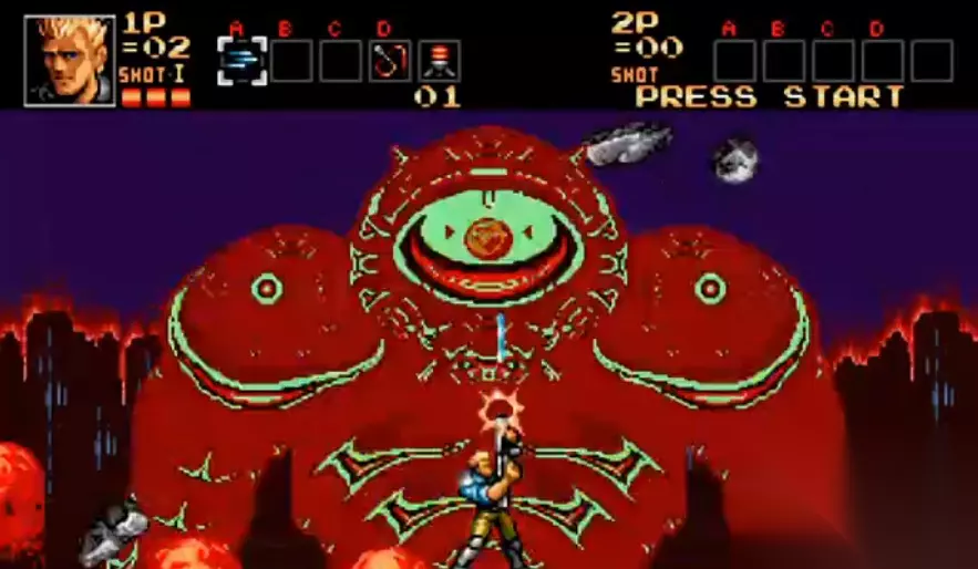 还是在同一年,索尼带着PS1同时对世嘉与任天堂进行了降维打击。 《魂斗罗:铁血兵团》的故事背景设定在《魂斗罗3:外星战争》事件的五年后,并以此催生了一系列相关续作,而在铁血兵团中玩家甚至可以可以体验到多种不同的结局。