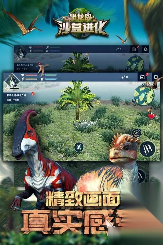 《多多恐龙岛》不同于其他追求写实和动作的恐龙游戏,本作是一部面向儿童的带有科普性质的益智游戏。游戏画面可爱,内置了无数恐龙的模型和相关介绍,其中包括习性、活动范围、存在时间、身体特征等等。玩家将选择其中的某些恐龙作为宠物来互动,通过日常的交互,玩家将切身体会这些恐龙的生存方式。这些内容都将让玩家在游戏娱乐的同时,学习丰富的恐龙知识。 高速下载 普通下载 优先233乐园APP下载 5、《恐龙岛沙盒进化大猎杀生存》