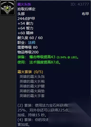 怀旧服法师毕业装备搭配p6 头部 霜火头饰,法师T3套装
