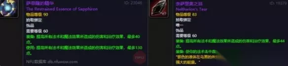 饰品 萨菲隆的精华,NAXX中的萨菲隆掉落。 奈萨里奥之泪,BWL中的奈法利安掉落。
