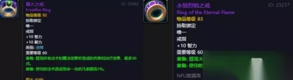 戒指 霜火之戒,法师T3戒指,NAXX中的科尔苏加德掉落 永恒烈焰之戒,NAXX中的小怪掉落。
