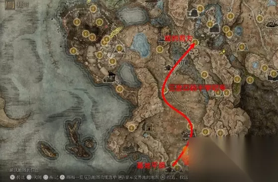 艾尔登法环黄金树幽影主线任务怎么完成?很多玩家都不知道艾尔登法环黄金幽影的主线任务怎么过,今天小编就给大家分享一期主线任务的详细图文攻略,感兴趣的小伙伴快来看看呀! 艾尔登法环黄金树幽影主线任务图文攻略 艾尔登法环主线任务推进流程: 1、进入墓地平原之后沿图示方向行进,最后到达赐福:城的前方。