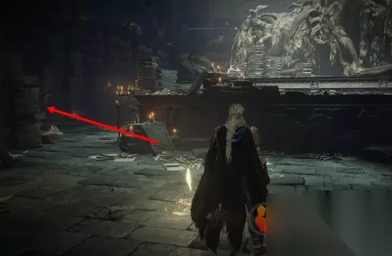 4、回到保藏库一楼,沿图中方向前进,可以到达赐福:西边城墙。