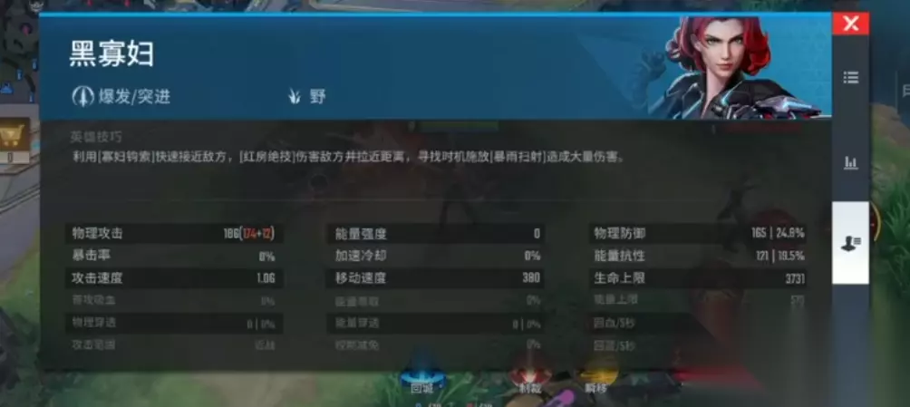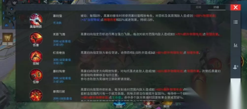 技能连招是玩好黑寡妇的关键,推荐3214的爆发顺序。先用三技能钩索突进贴脸,二技能红房绝技击倒控制,接一技能无影飞踢补伤害,最后开大暴雨扫射收割。这套连招能瞬间打满伤害,尤其对付射手或法师时,控到基本必杀。注意大招有吸血效果,残血时别急着跑,反手开大往往能反杀。小技能CD短,打完一套可以拉扯等技能,别硬扛伤害。