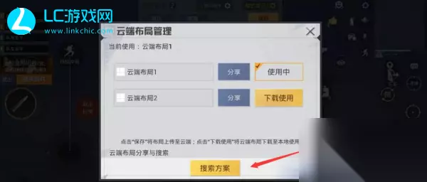 3、然后点击选择【搜索方案】、把准备好的键位码点击搜索即可。