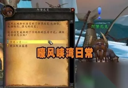 解锁嚎风峡湾日常的起始现在坐标(40,60)的位置,找到卡玛古的奥弗斯,顺着任务线往下做即可,这里有一个,后续在嚎风峡湾“无赖港”的任务要清完,不然无法顺利解锁日常,来到卡玛古港口找到“阿努尼克”就能接到第二个日常任务了。