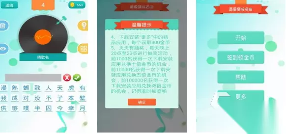 猜歌大师这款休闲性不错的猜歌手游提供了超多音乐,能让大家聆听五秒前奏曲然后进行选择,四个选项通关几率也会大大提升,猜测正确的歌名即可开启后续更高难的关卡,超大曲库的加持足以让大家体会到听觉享受,不断聆听曲目猜歌冒险的流程会让人忘了时间,音游粉丝均可成为猜歌大师在游戏世界自由猜歌,乐感不错的小伙伴都能感受到音乐的魅力。 高速下载 普通下载 5、《猜歌大赢家》