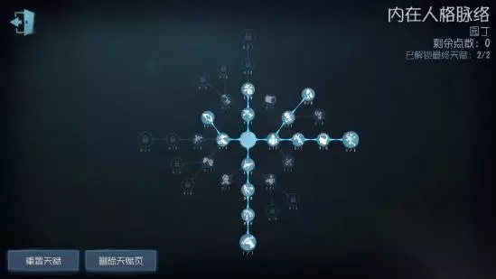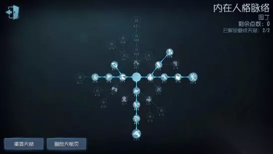 首先大心脏这个天赋肯定是要点的,它的强大之处在于能使求生者逆袭翻盘(详见第二期)。然后是双弹这个天赋,对与牵制位以及不会牵制的新手来说十分友好,板窗交互后只需拉距离就可以了,基本算得上是“无脑溜鬼”了。 再者就是三点假寐,假寐有多重要看过第二期的人应该都知道了。相信我,他绝对是第五人格中虽有天赋点中性价比最高的一个!不要看他只有短短的3%.6%.9%,真的能拖很长时间!点满假寐再加上园丁自身的特质,可以在椅子上无形牵制监管,为队友争取更多的时间去修机。不光园丁 每个角色都能带这个天赋,不过园丁自身的特质搭配这个天赋效果会更明显。 接下来就是绝处逢生了,这个天赋是突破自愈上限,属于平时没用,关键时候非他不可的天赋。不怕一万就怕万一,带上他指不定哪天会用到。两点爬行加速也是配合绝处逢生加快自摸速度的,同时也能大幅提高爬行速度,这一点在实战中也是非常有用的,避免了被打倒在地窖口或门口爬不出去的状况,性价比也很高。比赛当中经常会出现爬行加速起作用的关键场面。可能就是一个爬行加速,就能三跑、四跑或平局。 ㈡大心脏+搏命+三点假寐+绝处逢生+一点爬行加速