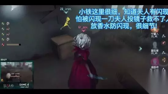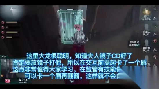 ✘重点来了☞园丁很聪明,在往大门废墟转的时候,知道夫人的镜子CD快结束了,直接翻过去夫人放镜子肯定会直接倒地,于是大龙很机灵,先开了一个盾再去翻窗,这样保证翻窗后不会直接被红夫人秒,还可以继续牵制。 这一点非常值得我们学习,不要盲目地乱开护盾,这样只会浪费护盾,要学会卡监管技能或交互来放盾