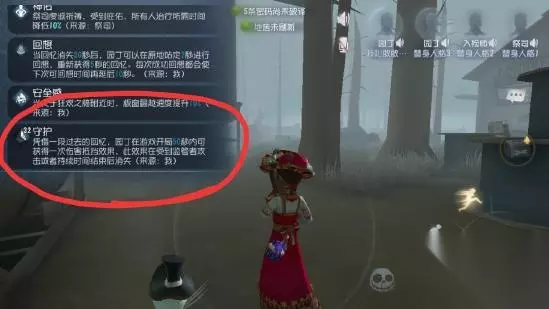 这个是园丁改版后的主要特质了——守护。说白了就是开局给你一个50s的护盾,护盾存在期间作用同先知的鸟,可以免疫一次监管者(或者队友)的伤害。在开局的护盾消失的20s之后可以通过原地站立2s再获得一个5s的短时间护盾,这个护盾除了时间短以外其余都和开局的护盾一样。没开一次护盾,下一次开护盾的时间就要在上一次的基础上加10s,就是第一次要20s才能开5s的护盾,这个护盾开完之后得要30s才能再开5s的护盾,这个护盾开完之后就得要40s才能开一个5s的护盾了,以此类推,护盾所需时间会越来越长 [安全感]