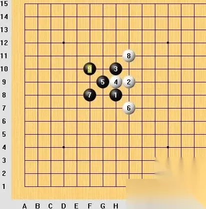 四角阵: 图中黑子所示即为四角阵,阵法能动性强。