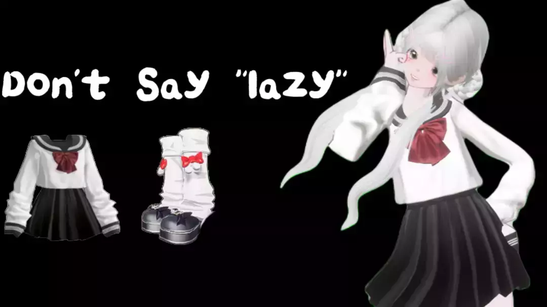 上衣是带有领子的白色长袖,胸前搭配酒红色蝴蝶结,下衣是黑色百褶裙,整体造型具有日系校园氛围