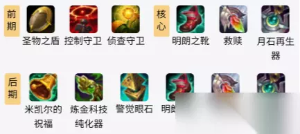 出装思路: 1、前期:凯南打辅助前期出门可以买工资装,这样不用吃输出的经济也可以有钱拿。 2、中期:月石再生器这件神话装备可以在战斗中给友方生命值最低的治疗,且神话被动可以增加技能冷却缩减。 3、后期:先做米凯尔的祝福给队友移除控制效果,然后在出炼金科技纯化器限制敌方的治疗效果。 s11凯南符文推荐