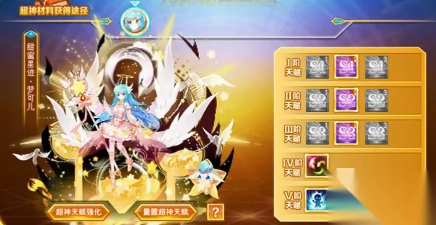 技能方面,他的mega技能为龙光战歌。其效果为魔法攻击伤害,双方角色每有一层狂或者暴击伤害的加持,那么该角色的总伤害量将提升40%。收益加成非常高,但风险也很高。主要还是吃自己家给予的buff加成,打BOSS,对面boss如果狂或者暴击buff多的话,那么角色反而更容易暴毙用不出来。 5、甜蜜星迹·梦可儿 她的mega技能是星耀毁灭,作为超光性目前非常好用的角色之一,其大招效果能对敌人造成魔法攻击,加上35%的吸血,并且多段伤害降低对面80%伤害一回合。是打续航作战以及输出作战的一把好手,特别是降对面攻击力的效果,在boss释放大招的前一回合使用会有奇效。