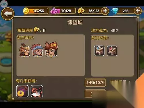 关门放吕布第一章怎么过?关门放吕布博望坡怎么过?第一章博望坡是关门放吕布第一个精英关卡,他在历史上也是兵家必争之地!下面小编就给大家讲解一下关门放吕布博望坡攻略! 首先这个关卡的敌方阵容是两类小兵加一个守将。小兵是藤甲蛮兵,这个小兵的防御不错,还有掷斧蛮兵,这个兵种的攻击要稍高一点。守将是文丑,一级一星武将,防御型近战物攻,范围伤害击退,范围伤害吸血。防御建筑是一级近卫营和一级羽林营。过关奖励可以获得几率的黄玉挂坠和诡刀。另外还可以额外获得经验药水,至于金币和矿石是必得的。