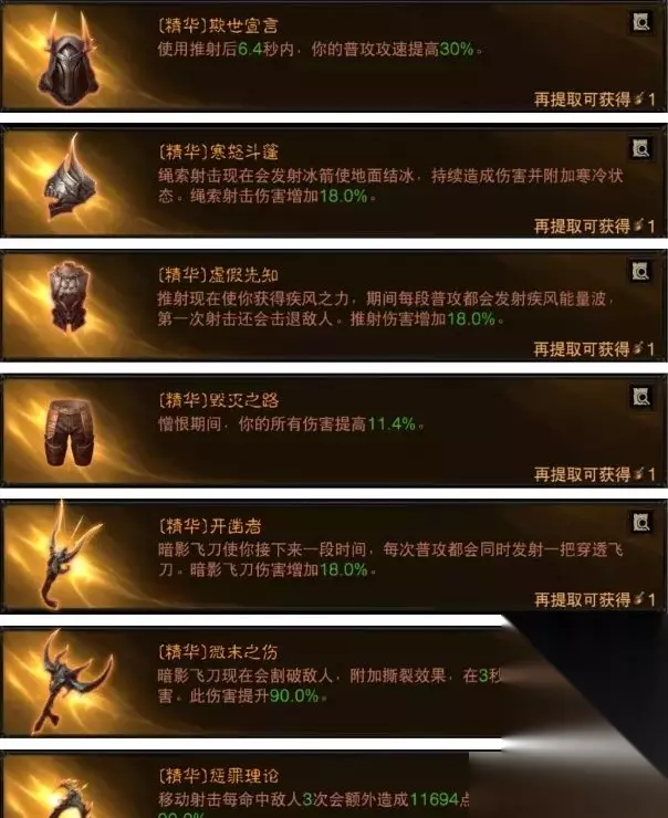 (少个主手精华,目前只有开凿者PVE合适) 技能:憎恨+推射+暗影飞刀+绳索射击(普攻移动射击) 猎魔人已经好几个版本没有改动了,依然是疾风推射流,唯一可惜的是主手开凿者并没有在PVE找到能搭配技能的新精华,如果猎魔人主手还能搭配一个强力精华必然能挤进T1! 5、圣教军天谴混合流