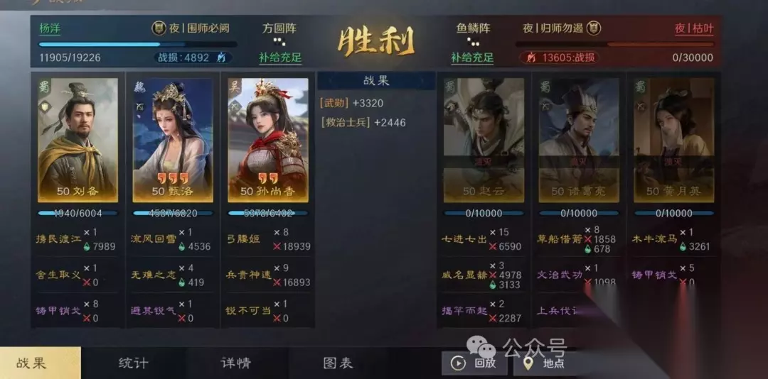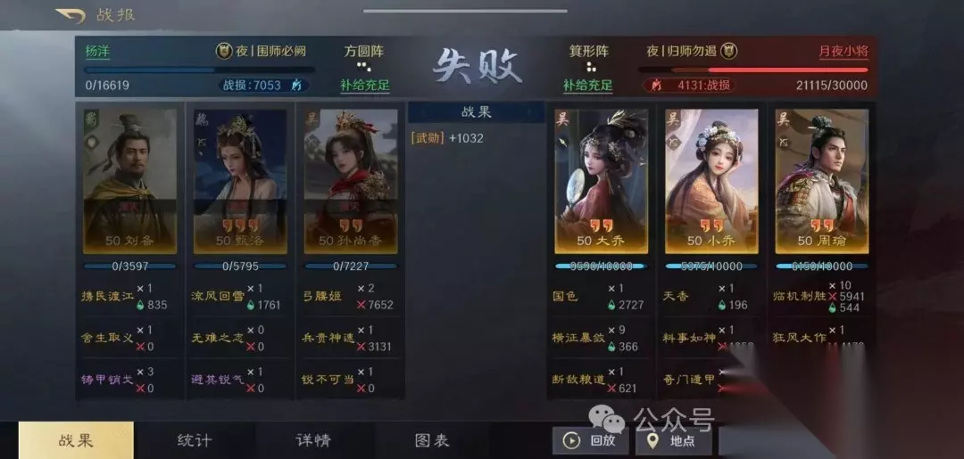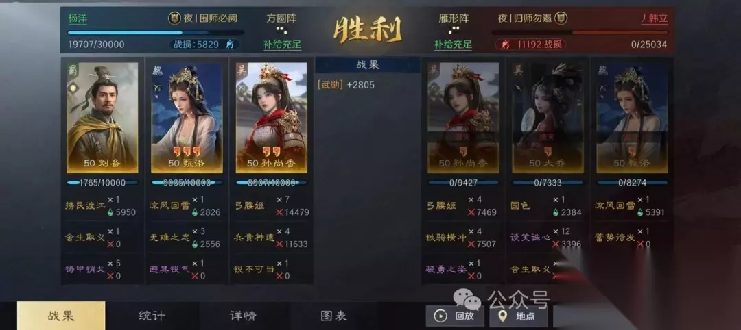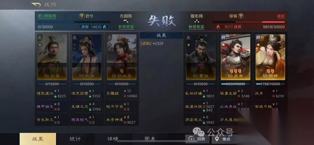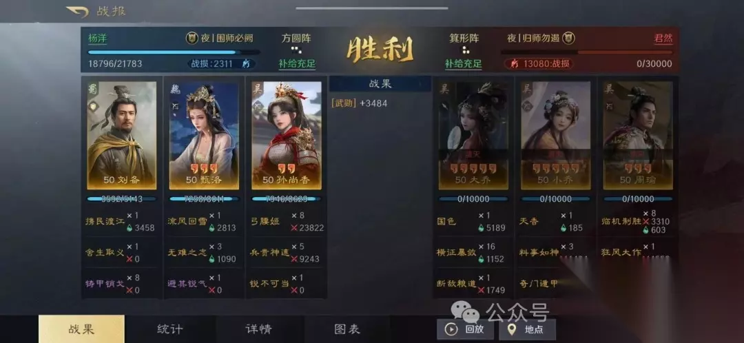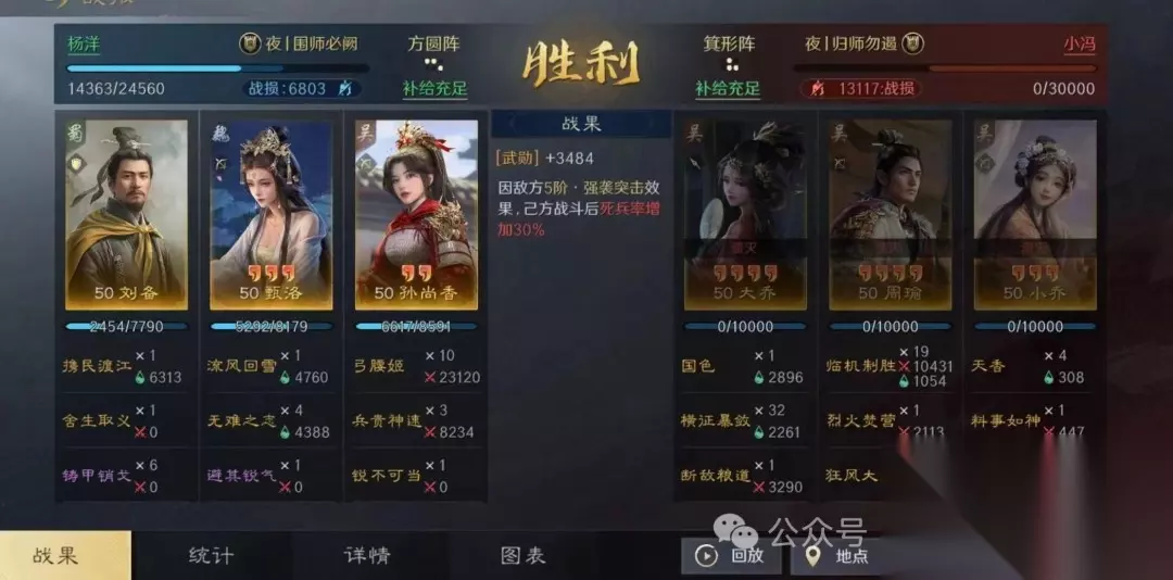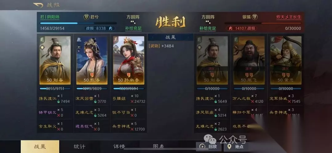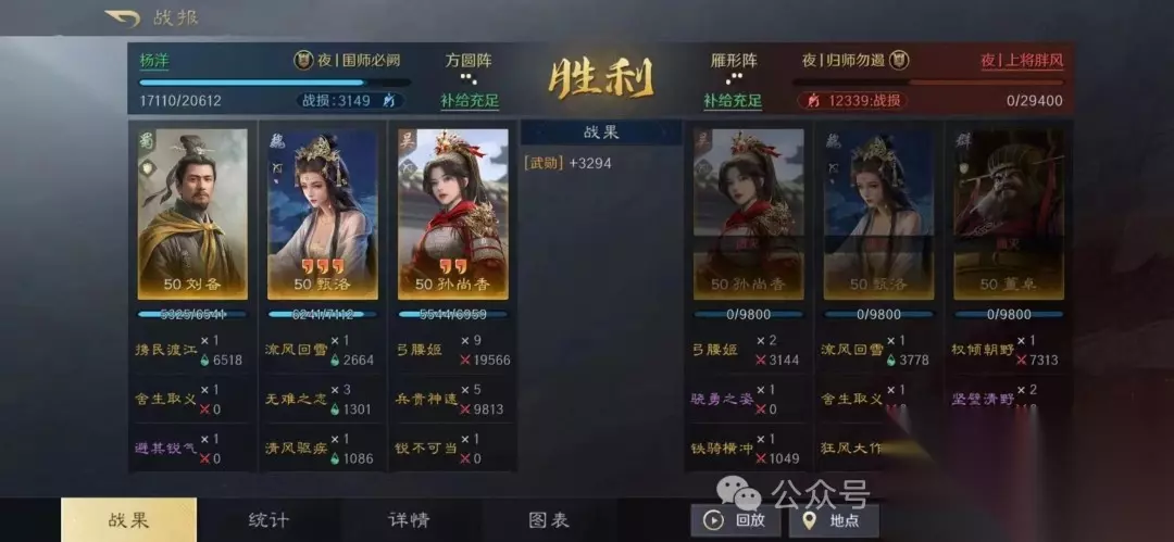 该组合利用刘备的全体回血和统率加成,显著提升队伍坦度和连穿能力。 二、战报分享 1. 对抗铜雀弓
