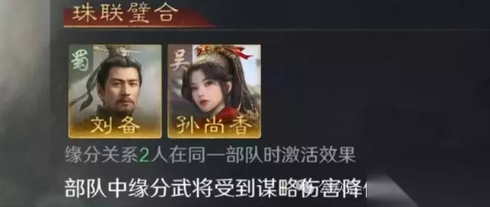 孙尚香本身具备压制铜雀弓的能力,刘备加入后进一步提升队伍坦度,战斗表现更加稳定。 2. 对抗桃园弓