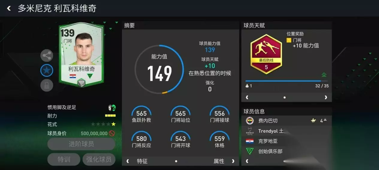 创始俱乐部新赛季基础球员利瓦科维奇总评给到了139,配备了最后防线天赋,对他门将位置上的各项关键数据提升显著。这让他的扑救反应速度进一步加快,增加了扑救覆盖面积的范围,也让利瓦科维奇的爆发力更强悍,身体素质也变得极具韧性。