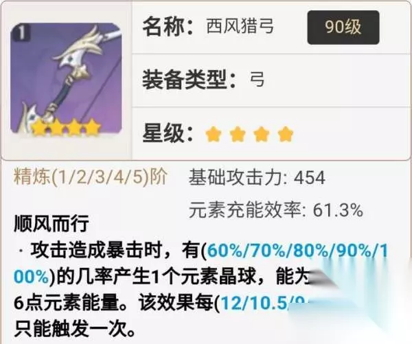 (7)【西风弓】 适合后台大招角色使用,可以搭配「绝缘套」专门放大招就可以了。也可以给一些不吃攻击力且没有合适特效的武器的角色使用。刚好是这期五郎的毕业武器,五郎纯岩队的神器。 适用角色:绝缘温迪、五郎、绝缘安柏、夜兰、珐露珊、后台甘雨等。