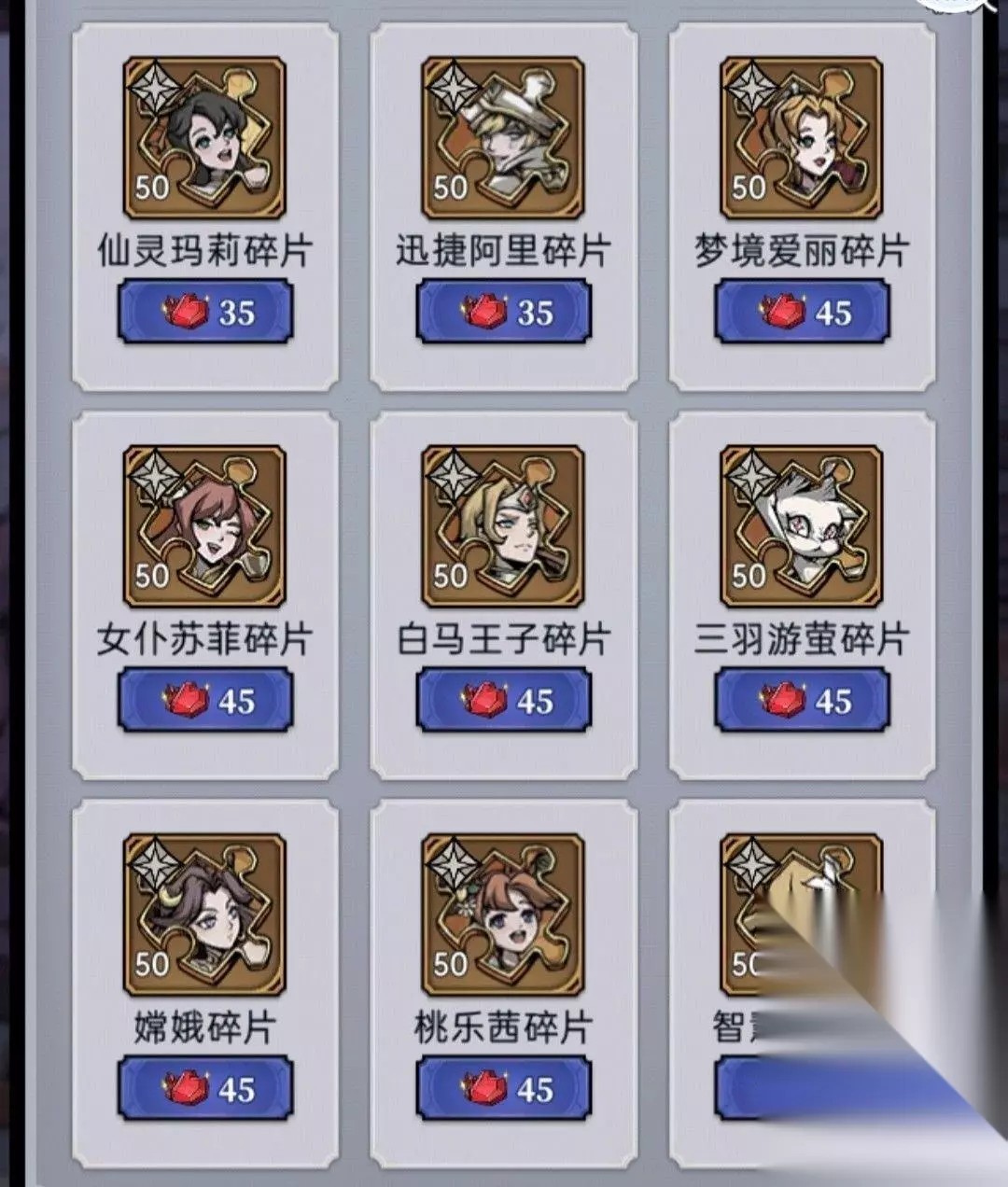 6、皮肤商店 ①推荐兑换:白雪的黯晶魔女*永久和白马的月下王子*永久,其他皮肤请根据自己喜好自行兑换 ②不推荐购买限时皮肤 ②皮肤碎片的主要来源是成就阶段奖励和跨界商店的限购10*皮肤碎片,其中从成就阶段中可获取共200皮肤碎片