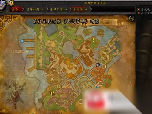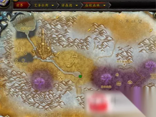 打开我们的地图,飞离达拉然,然后往地图右上角方向飞去。