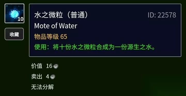 水之微粒 相对于土来说,水的价格能高点有限,钓鱼群和钓鱼有几率获得,用空气阀也能吸,刷新点纳格兰的元素高地,哈兰周围,泰罗卡森林刷大树,影月谷刷眼镜蛇鳞片周围,赞加沼泽的电鳗