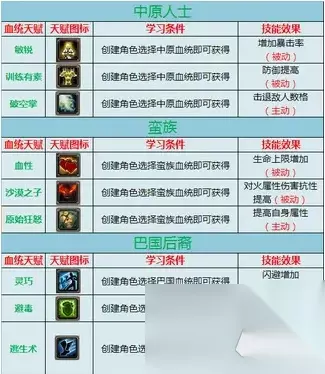 各职业搭配: 1.炎魔 炎魔选血统个人感觉蛮族与中原都不错。蛮族是血高,而炎魔的变身增加10%气血上限,配合蛮族3%气血,就是13%气血加成。而且炎魔是第二肉盾,第一肉盾的才加18%气血上限。所以蛮族比较能抗。 中原,3%的防御加成对炎魔来说忽略,因为防御越高,增加防御减免的伤害就越低了。3%的防御加成对炎魔来说可有可无。但1%的暴击比较好,炎魔的喷火配合1%暴击比较好。这游戏的宝石增加暴击很低,1%的暴击需要2到3课暴击宝石了。 炎魔选蛮族、中原两相宜。 2.霸王 感觉霸王第一选择是中原,霸王就是个爆发职业。而中原的暴击为霸王稍微有点加强。 霸王非中原莫属。 3.和尚 和尚分为修罗和尚于金刚和尚。金刚和尚个人认为最好选择蛮族。修罗选中原比较好。另外现在也有比较多的和尚选择巴国血统,原因是为了哪5%的毒抗。个人观点,金刚和尚的气血恢复,攻击(伏魔仗10%气血上限转化成攻击)都和气血上限有关,而多3%气血上限的蛮族是不二选择,至于那抗性,一个是不灭金身这技能可以弥补,另外装备、坐骑等都可以弥补。修罗和尚是少林的攻击系分支,选中原最好,因为多暴击,而蛮族那3%气血也不能让修罗的生存能力提高多少。 金刚少林选蛮族,修罗中原。