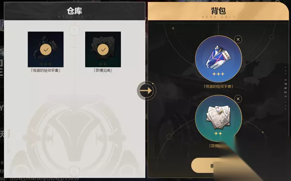 4、打开背包后选择两个道具点击【确认领取】即可发送到游戏账号里面,需要注意的是该页面只能选择两个道具进行领取,所以在领取的时候一定要想好是否是自己需要的道具。