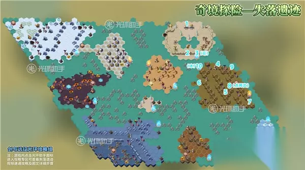 【剑与远征奇境探险失落遗迹攻略】 1.到1的位置,与博物馆对话 2.到2的位置,开门 3.到3的位置,传送至云岛 4.到4的位置,消灭沿途怪物阵营,获取奖励 5.到5的位置,消灭沿途怪物阵营,获取奖励 6.到6的位置,消灭沿途怪物阵营,获取奖励 7.到7的位置,消灭沿途怪物阵营,获取奖励 8.到8的位置,点击两次,启动机关 9.到9的位置,消灭沿途怪物阵营,获取奖励 10.到10的位置,传送至冰岛