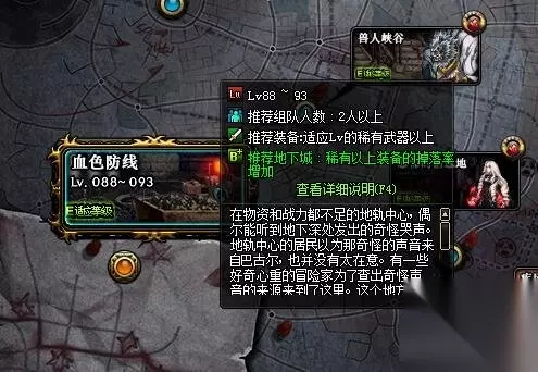 血色防线副本在DNF90版本新增的中央公园区域,玩家在89级的时候,只要将红色模组系列主线任务做完就可以接取开启血色防线的外传任务了。完成任务之后,玩家就可以开启血色防线副本了。 血色防线副本属于特殊副本,不过和魔界裂缝不同,血色防线副本的特殊主要体现在怪物上面,其他并没有什么特别。血色防线的前半段房间和怪物都是一样的,但是后半段的怪物和BOSS是随机的,随机的范围就是就是中央公园区域的五个普通副本:时间广场、兽人峡谷、恐怖栖息地、疾风地带和红色魔女。玩家会随机碰到以上五个副本其中之一的怪物和BOSS。