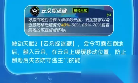 3、云朵捉迷藏 讲解:被迫天赋[云朵捉迷藏],会令可露在倒地后,躲入云朵,在云朵上徐徐移动坐标,避免倒地后落空守卫逃生门的能力。