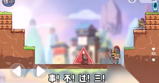 三国哈哈哈飞飞大冒险3通关攻略 1.第一回合需要在警示的这个位置起跳,连续跳动到右边的台阶上即可;