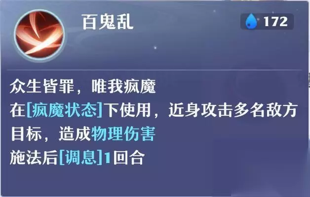2、百鬼乱:在疯魔buff的帮助下,伤害极高。