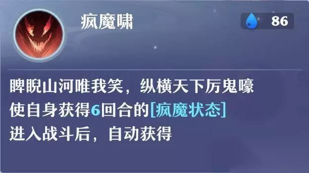 五、鬼王宗技能简介 1、疯魔啸:开局要合理利用这个技能buff,可以提升其他技能的强度。