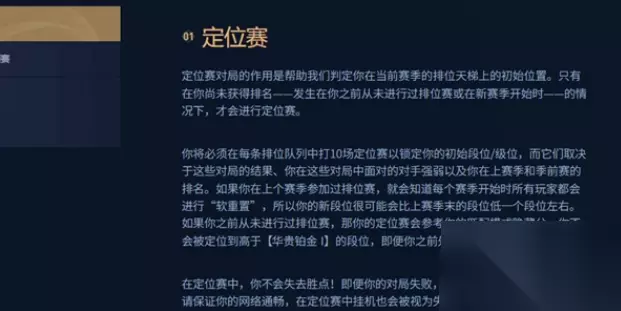 详细介绍: (1)定位赛概述 在英雄联盟中,定位赛是一种用于确定玩家游戏水平的机制。通过定位赛,玩家可以展示自己的实力,并确定自己在游戏内的段位。 (2)定位赛规则细节 1. 赛季开始时的定位赛:每个新赛季开始时,玩家需要进行定位赛来决定初始段位。通常需要通过一系列比赛来展示实力,根据胜场数和表现来评定段位。 2. 胜负与表现:在定位赛中,胜利和表现是评定段位的重要因素。胜利场次和表现优秀的玩家将有可能被定位到更高的段位。 3. 失败的影响:虽然失败可能会影响段位的提升,但在定位赛中失败并不会导致段位下降。这意味着玩家可以大胆地参与比赛,锻炼自己的技能。 4. 跳段现象:在某些情况下,玩家可能会遇到跳段现象,即直接晋升到更高的段位。这通常发生在玩家表现出非常出色的水平时。 5. 定位赛数量:定位赛通常需要完成一定数量的比赛才能确定最终段位。比赛数量不是固定的,会根据赛季和具体规则有所调整。 (3)注意事项 1. 定位赛是评估个人实力的重要机会,玩家应尽可能展现自己的水平。 2. 赛季开始时的定位赛结果尤为重要,它将决定玩家在新赛季的起点。 3. 玩家在定位赛中的表现将影响未来的匹配对手,因此需认真对待每一场比赛。 (4)总结 LOL定位赛规则旨在公平地评估玩家的实力并匹配相应的段位。通过定位赛,玩家可以展示自己的水平,并与其他玩家一较高下。了解并遵守定位赛规则,将有助于玩家更好地参与游戏并提升自己的实力。