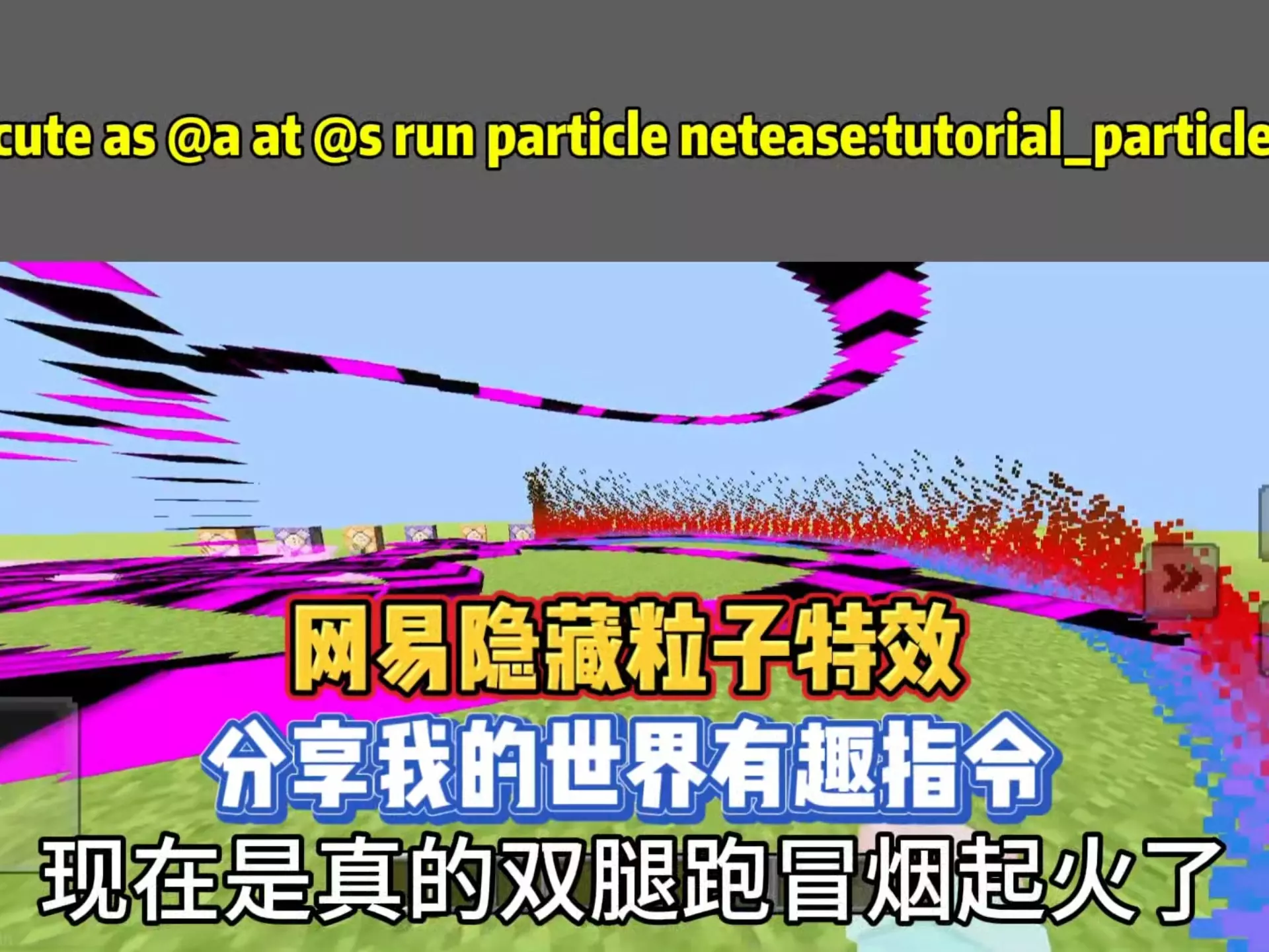 这是一篇《我的世界》粒子特效指令教程,展示了使用指令后,角色周身、特定装置旁呈现出的多种炫酷粒子特效,能帮助玩家掌握我的世界粒子特效指令的使用效果与方法。