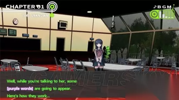 Step 3: 前往餐厅 他们走上了二楼,但进入餐厅后,发现暂时没有其他人等候。于是,他们只得在餐厅里等待。此时,苗木诚和舞圆开始了一段闲聊。舞圆突然自称自己是一个神经质的人,随即又澄清说那是开玩笑,气氛变得轻松起来。这个时候,苗木诚获得了“再次询问”的能力,可以针对紫色字体的信息进行详细询问。 苗木诚便再次向舞圆提问,想了解她的背景。舞圆解释道,她与苗木诚曾在同一所初中读书,已经有三年没见了。她回忆道,曾经是苗木诚的帮助让她获得了足够的勇气,才能成为如今的“超高校级”的学生。她还表示,自己希望能成为苗木诚的“超高校级助手”。 苗木诚听了舞圆的故事,心中颇受触动,便不再在意周围的事情和时间。